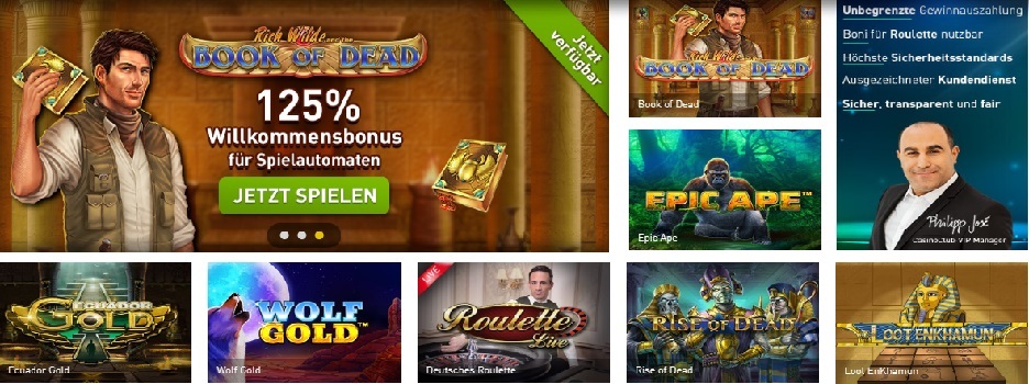 CasinoClub ist ein tolles Casino, indem ich vor ein paar Monaten angefangen habe zu spielen. Ich werde es nicht mehr wechseln. Ich bin vollkommen von den Angeboten überzeugt und kann nur beste Beurteilungen liefern. Das Wettangebot und die Spielautomaten sind genau das, was ich gesucht habe. Man kann mobil spielen und die Auszahlungsdauer ist kurz. Der Kundensupport unterstützt wirklich mit kompetenten Mitarbeitern. Ein Rundumpaket, mit Jackpots und super Software- Providern.