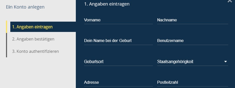 Die Registrierung wurde in wenigen Schritten gestaltet, wodurch auch Anfänger schnell zurechtkommen. Nachdem auf „Registrieren“ geklickt wurde, müssen Neukunden Felder wie Name, Anschrift, mobile Telefonnummer und Geburtsdatum eingeben.